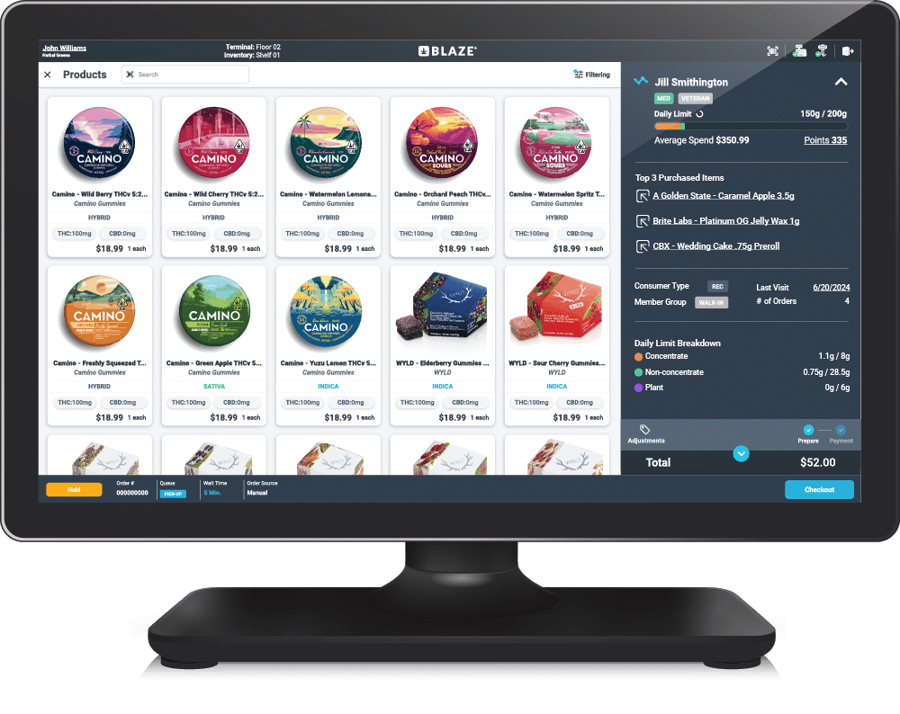 The system helps prevent illegal sales by tracking daily purchase limits and verifying customer age. For online sales, BLAZE provides built-in age verification and ID checks.
