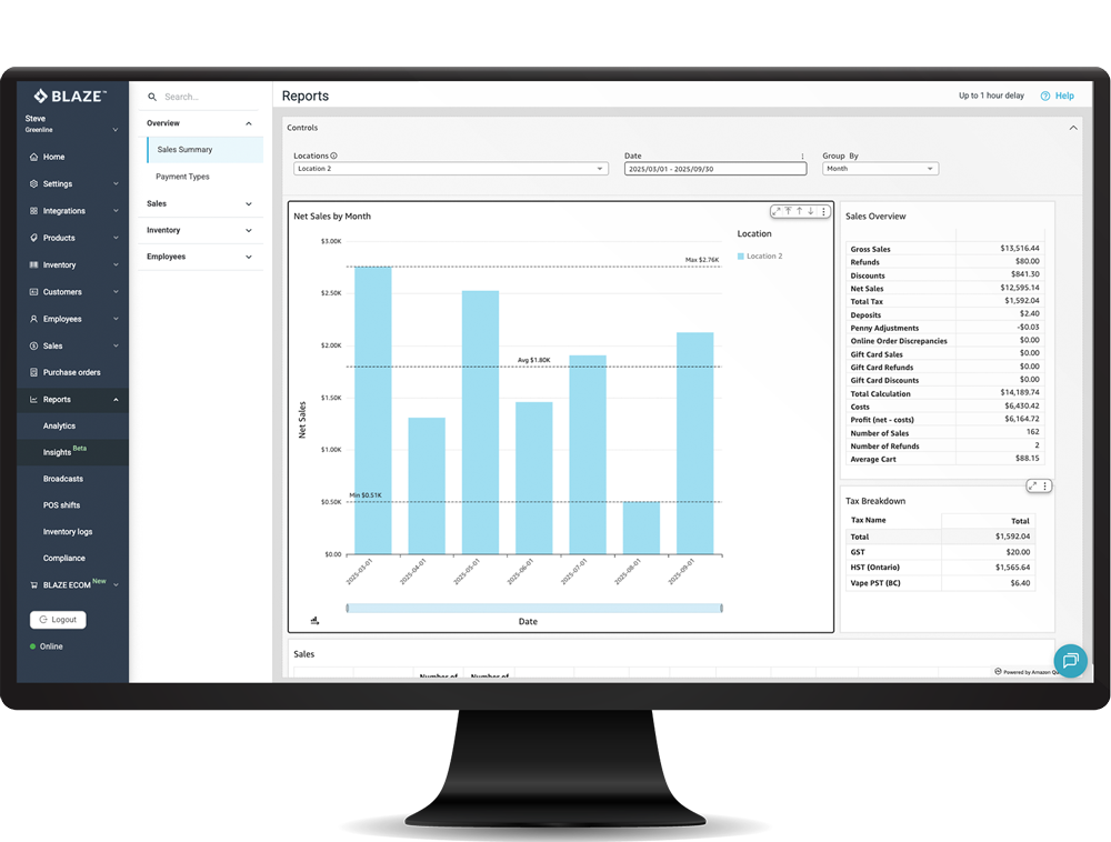 BLAZE provides robust reporting tools, including sales trends, product performance, inventory turnover, and employee productivity—accessible by location or across your entire business.