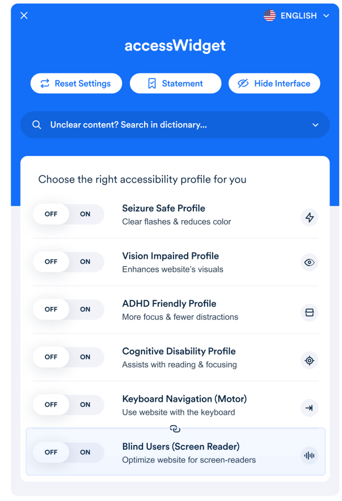 accessiBe’s AI scans your BLAZE Site and applies WCAG-based adjustments with no coding required.