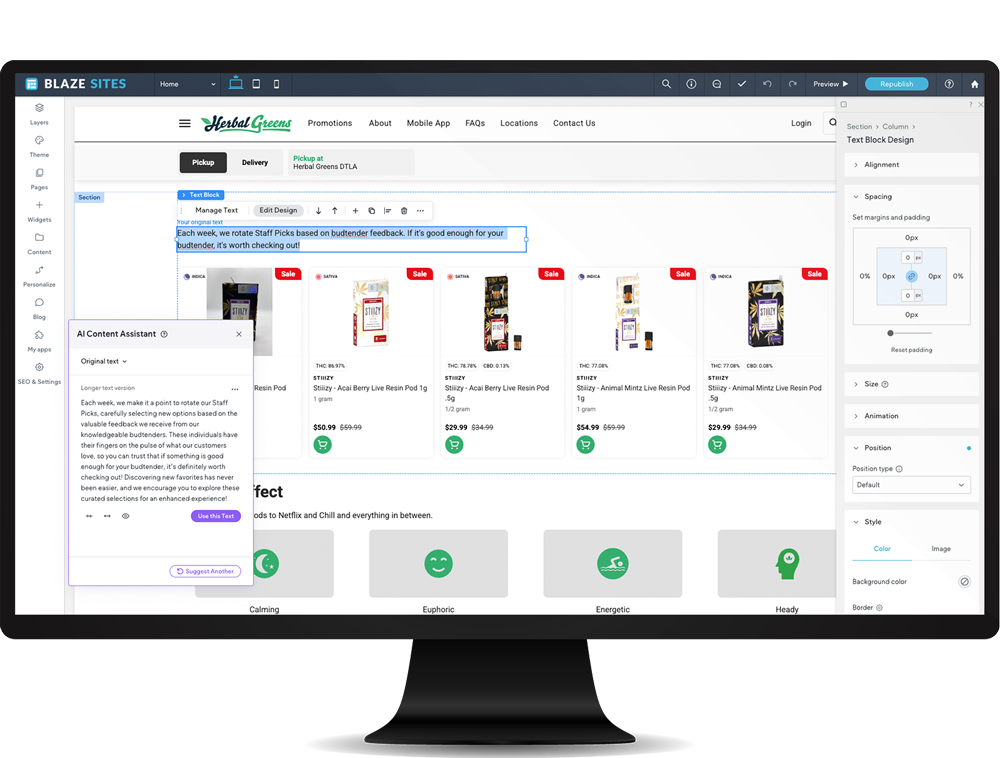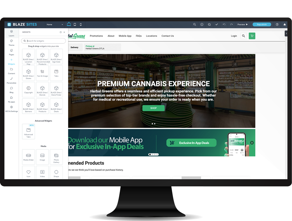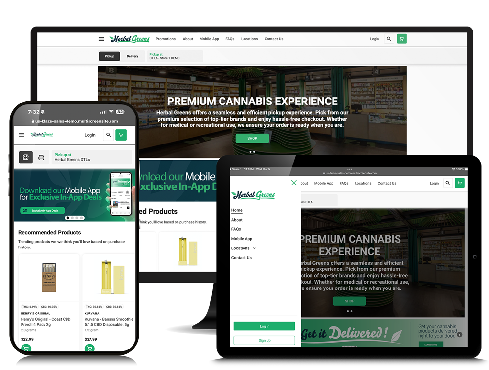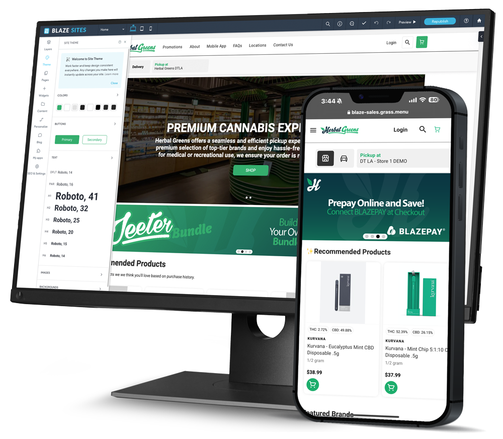 Curious about the transformative potential of BLAZE Sites for your cannabis retail business? Experience firsthand how our platform seamlessly integrates content and e-commerce to create a cohesive, user-friendly experience on laptop, tablet, or mobile.