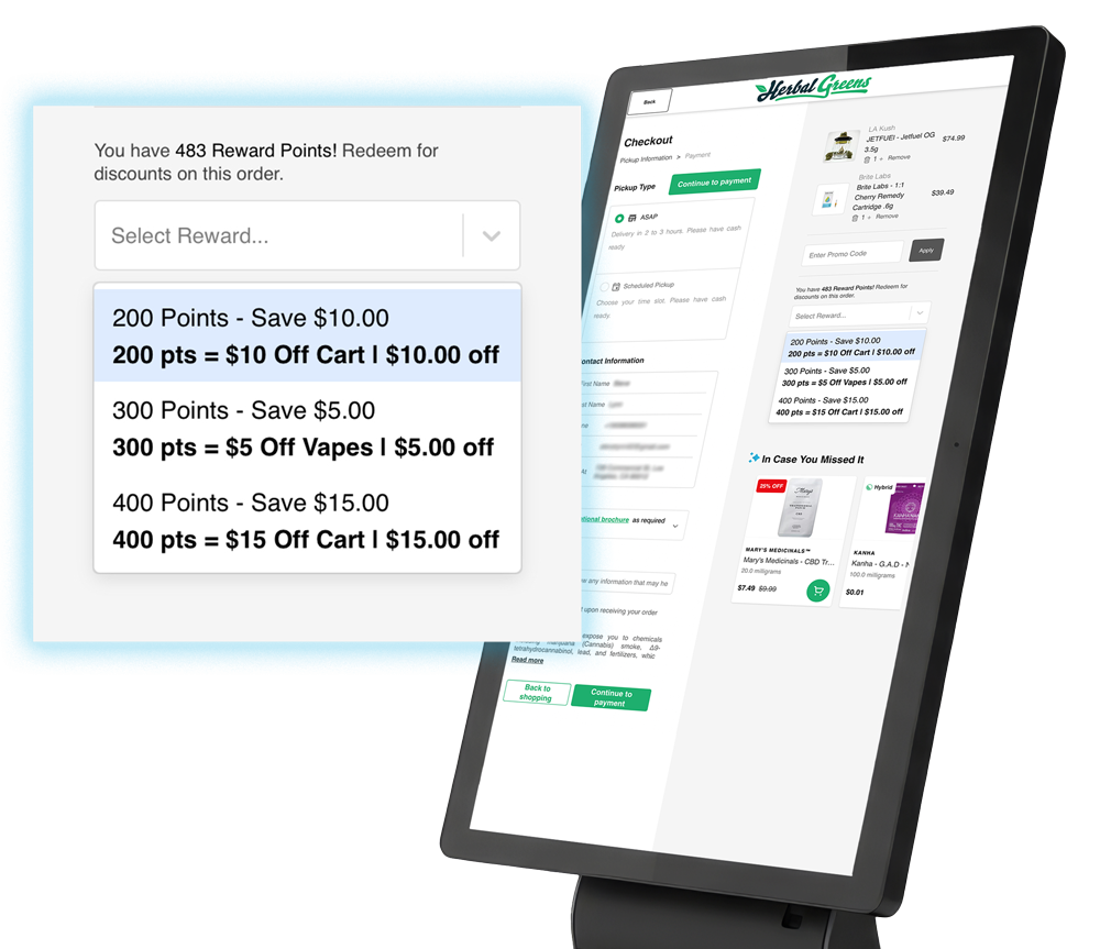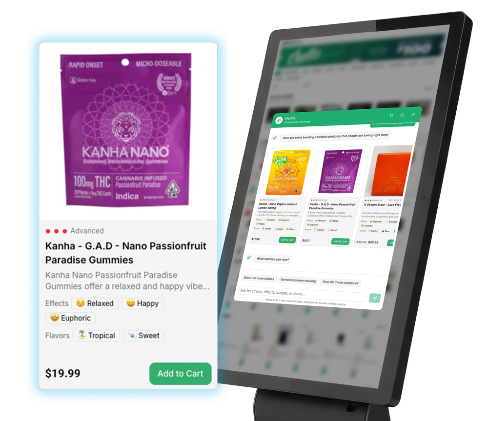 Elevate your dispensary’s self-service experience from a simple transaction to a personalized journey. The BLAZE Kiosk uses a sophisticated AI to drive higher order value and deeper customer connections.